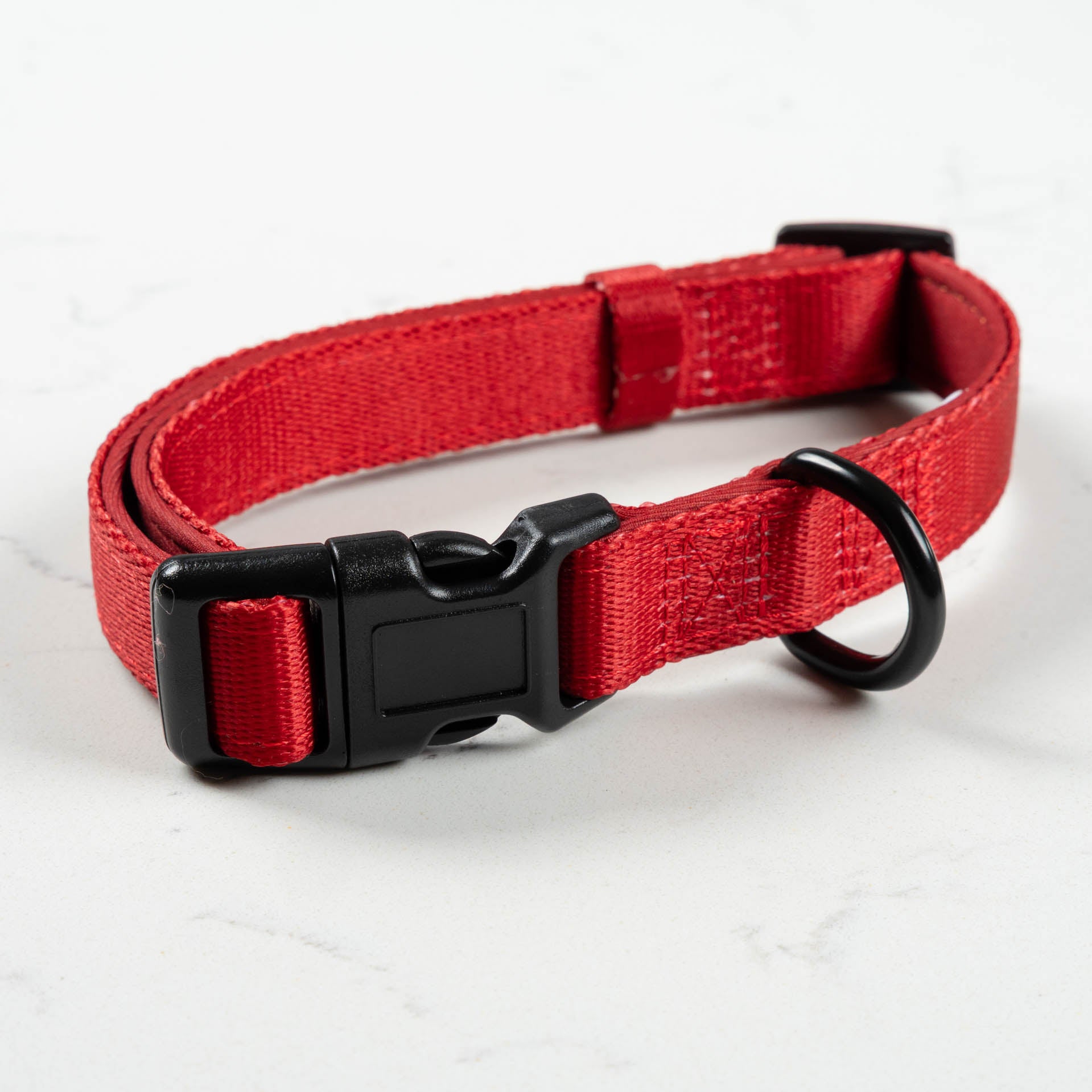 Measure your dog’s neck where a collar would naturally sit. Make sure there’s enough room to fit two fingers between the collar and your dog’s neck for a comfortable fit. If your dog is between sizes, we recommend sizing up.