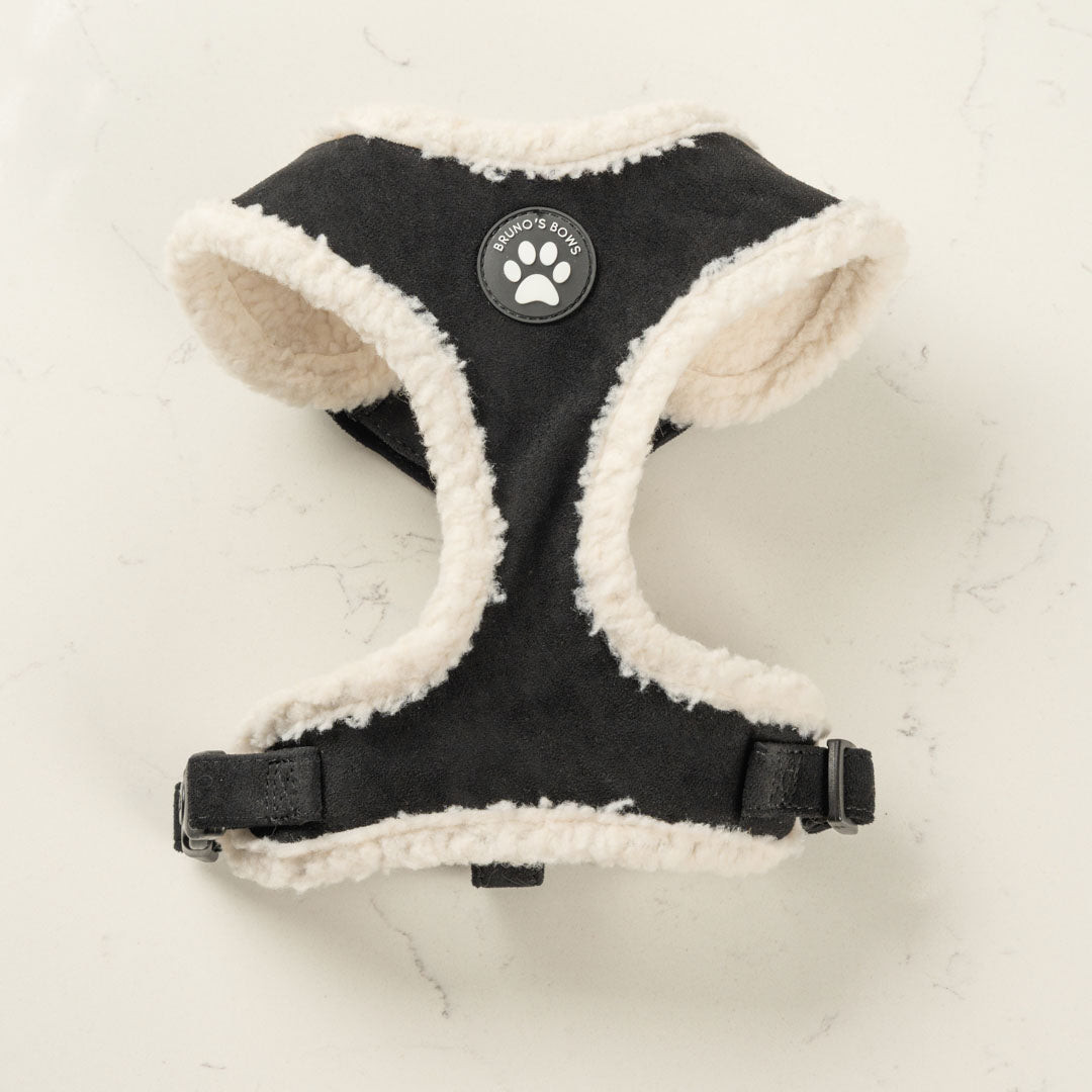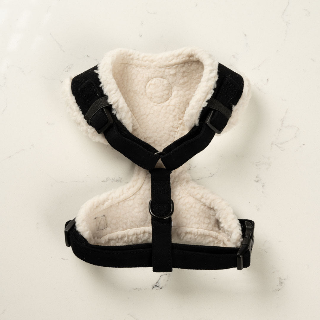 The Black Velvet Harness is a snug, stylish, and comfortable everyday harness, featuring a gorgous black velvet and soft white teddy fleece exterior and a breathable mesh lining. It has fully adjustable neck and chest straps and a simple side clip for a quick and secure fit, making it perfect for cosy, fuss-free walks.