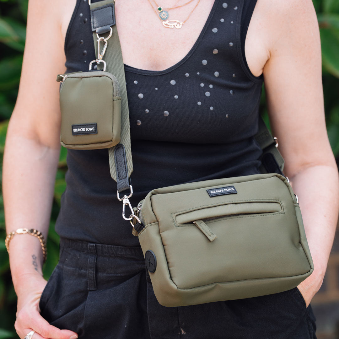 Say goodbye to chaotic poop bags, squished treats, and cluttered pockets — and say hello to the ultimate dog walking companion. Our stylish, water-resistant Dog Walking Bag in Khaki Green has been thoughtfully designed for dog owners who want to stay organised and look good doing it.